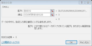 を入力して、SMALL関数ダイアログボックスにもどりましょう。