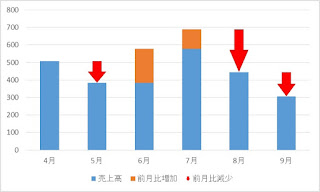 4月と5月を比べると、数値が下がっているので、それを表現したい。