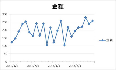 折れ線グラフの項目の日付が細かすぎなので、半年間隔にしたい