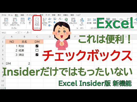 しかし、セル内に収めるのが面倒など、なにかと、面倒でしたが、Insider版で追加されたチェックボックスは、まぁ便利で楽々。